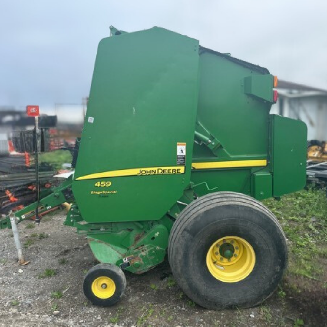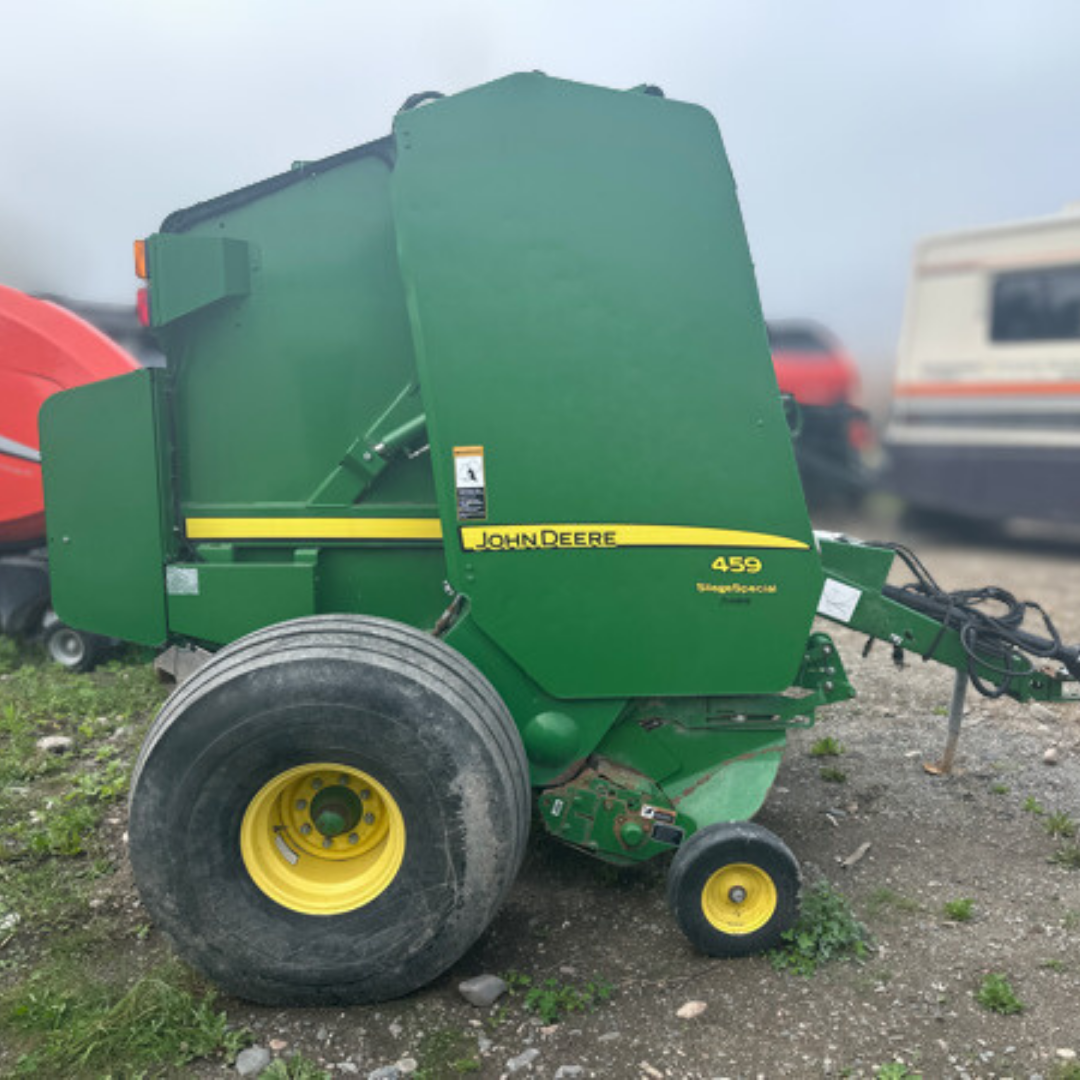 La John Deere 459SS allie robustesse et fiabilité grâce à son système avancé SuperSlice™, offrant des balles denses et uniformes ainsi qu’une performance constante dans toutes les conditions de récolte.